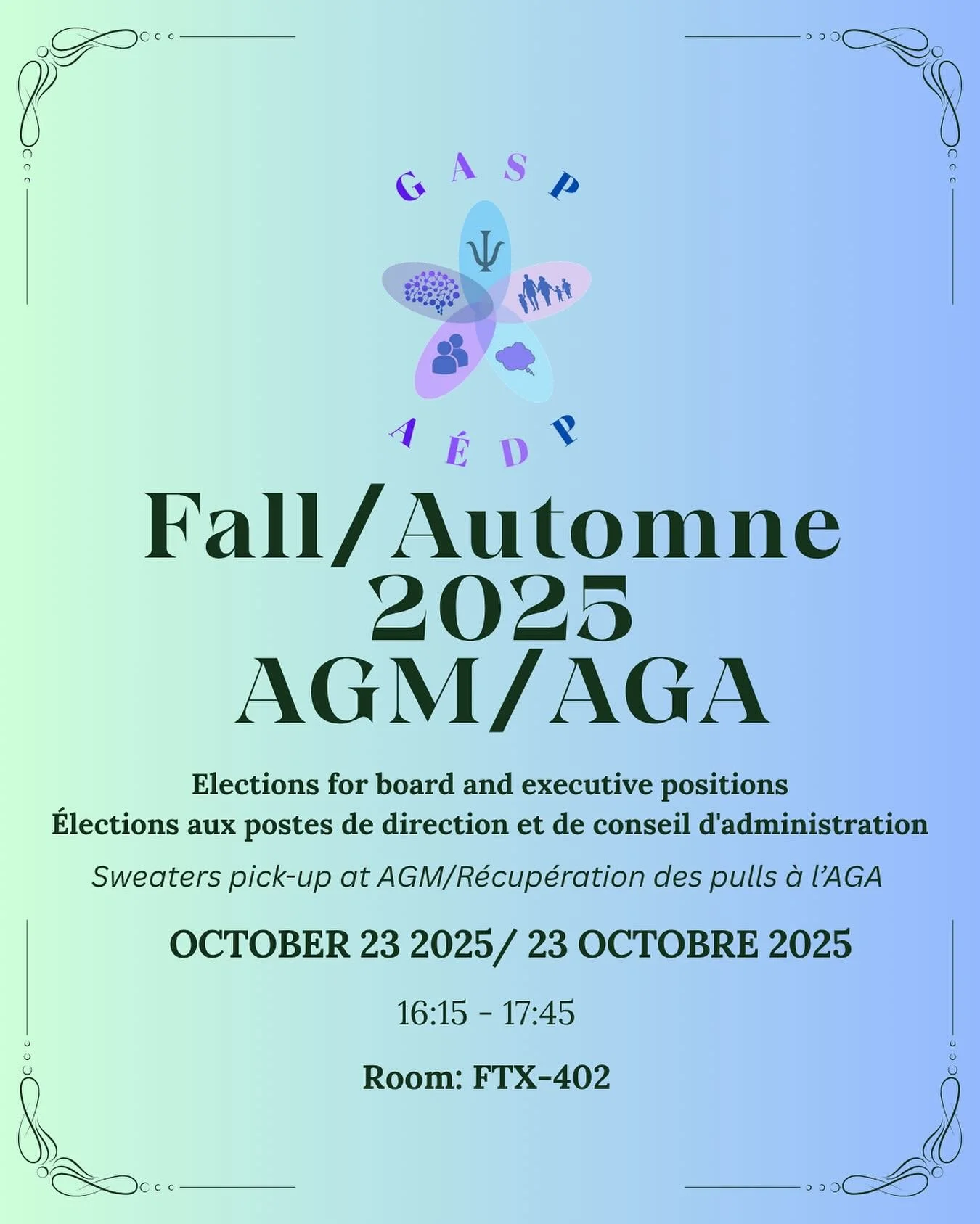 GASP aims to host a range of enriching events for graduate students in psychology at the University of Ottawa. All the events are posted on our Instagram @gasp.aedp. Be sure to follow us to keep up-to-date!